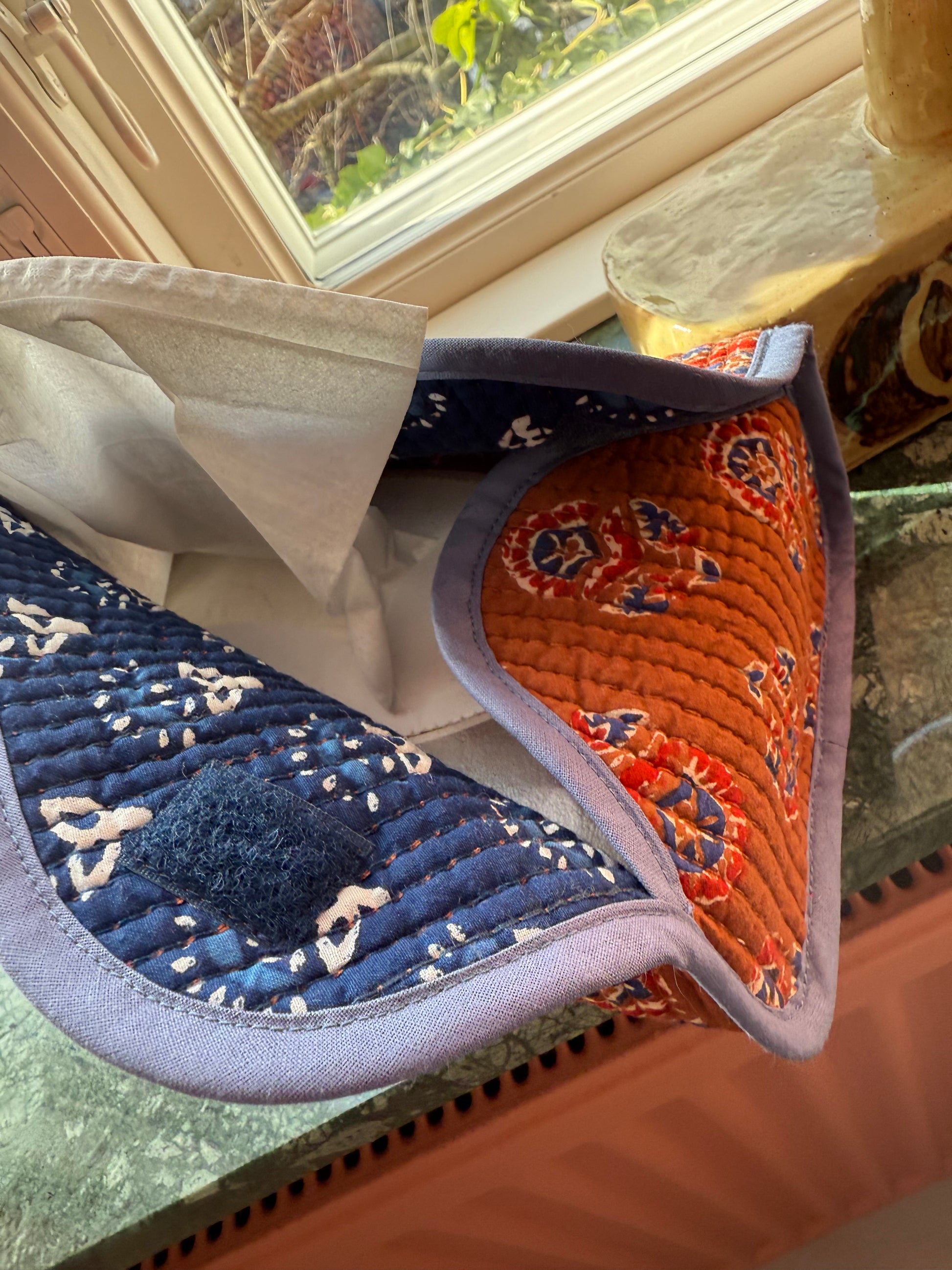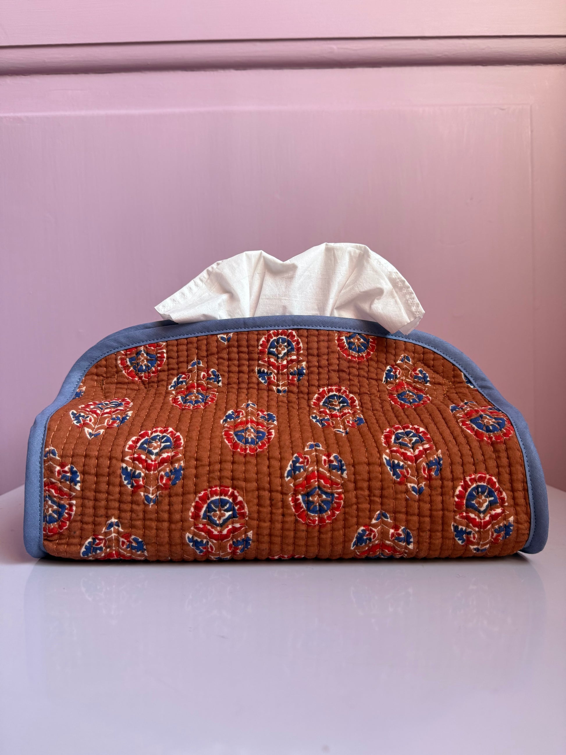 Add a touch of style and elegance to your tissue box with this soft and functional quilted holder - transforming an everyday necessity into a tactile, aesthetic detail for your bedside table, bathroom, or desk. The fabric is a personal find from my favorite textile shop in Paris—a place I have cherished since I was 19, studying at The Royal Danish Academy.