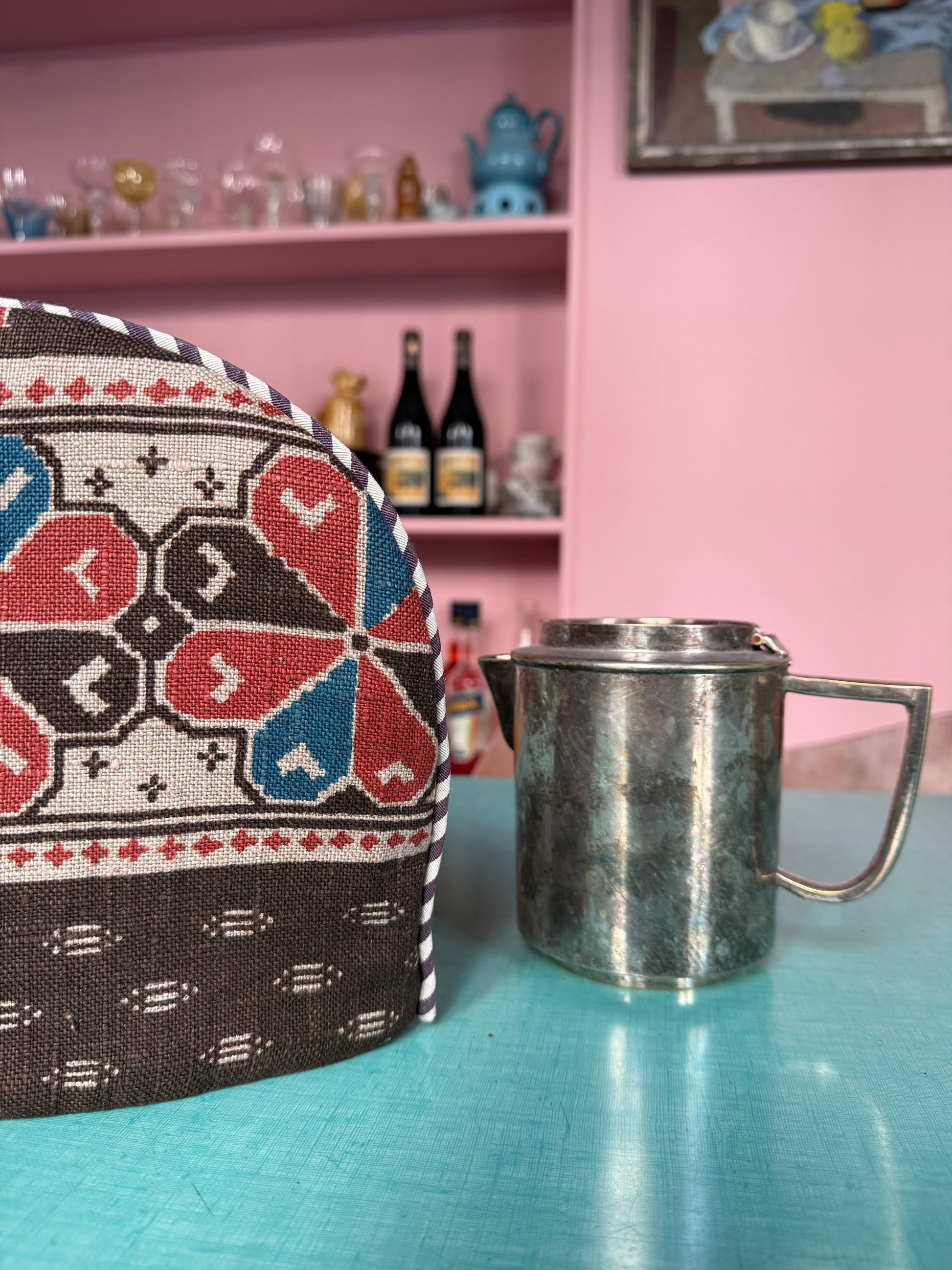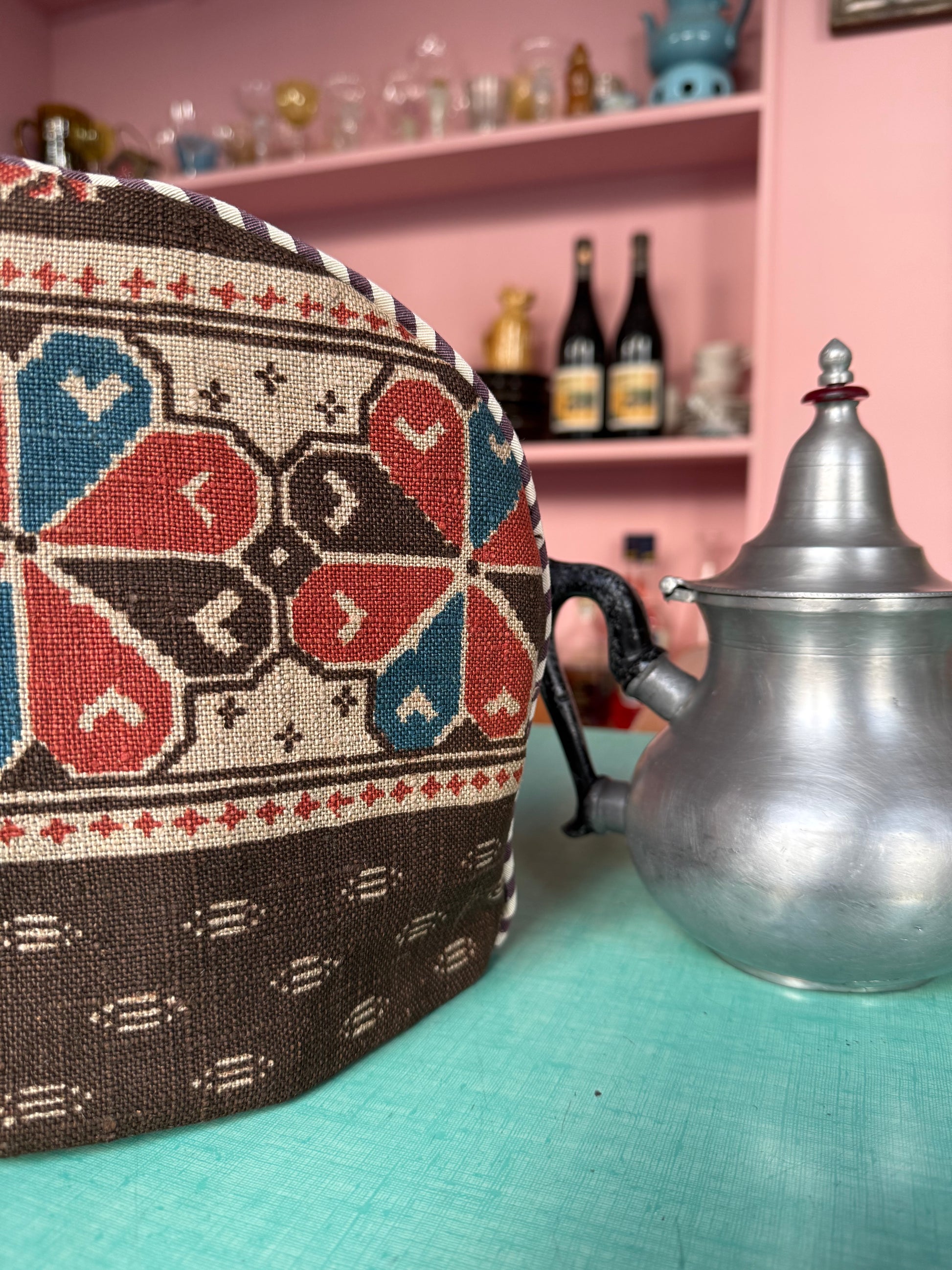 Keep your afternoon tea or coffee warm with this beautiful tea cozy. I’ve lined the inside with a heavy, light-blue velvet to make sure the heat stays right where it belongs—inside the cup! The beautiful fabric on the outside is a find from Sweden. One cup for your friend, one cup for you, and it’ll stay nice and warm for the refill.